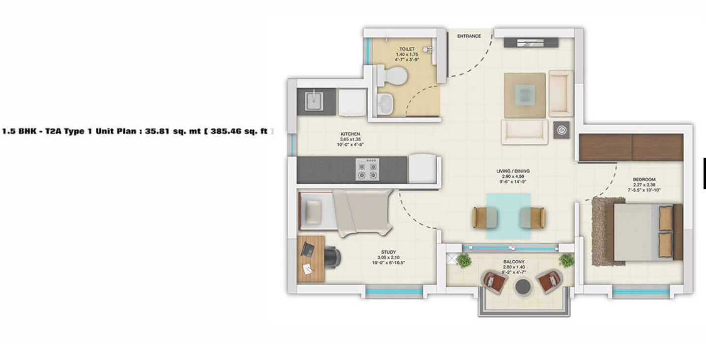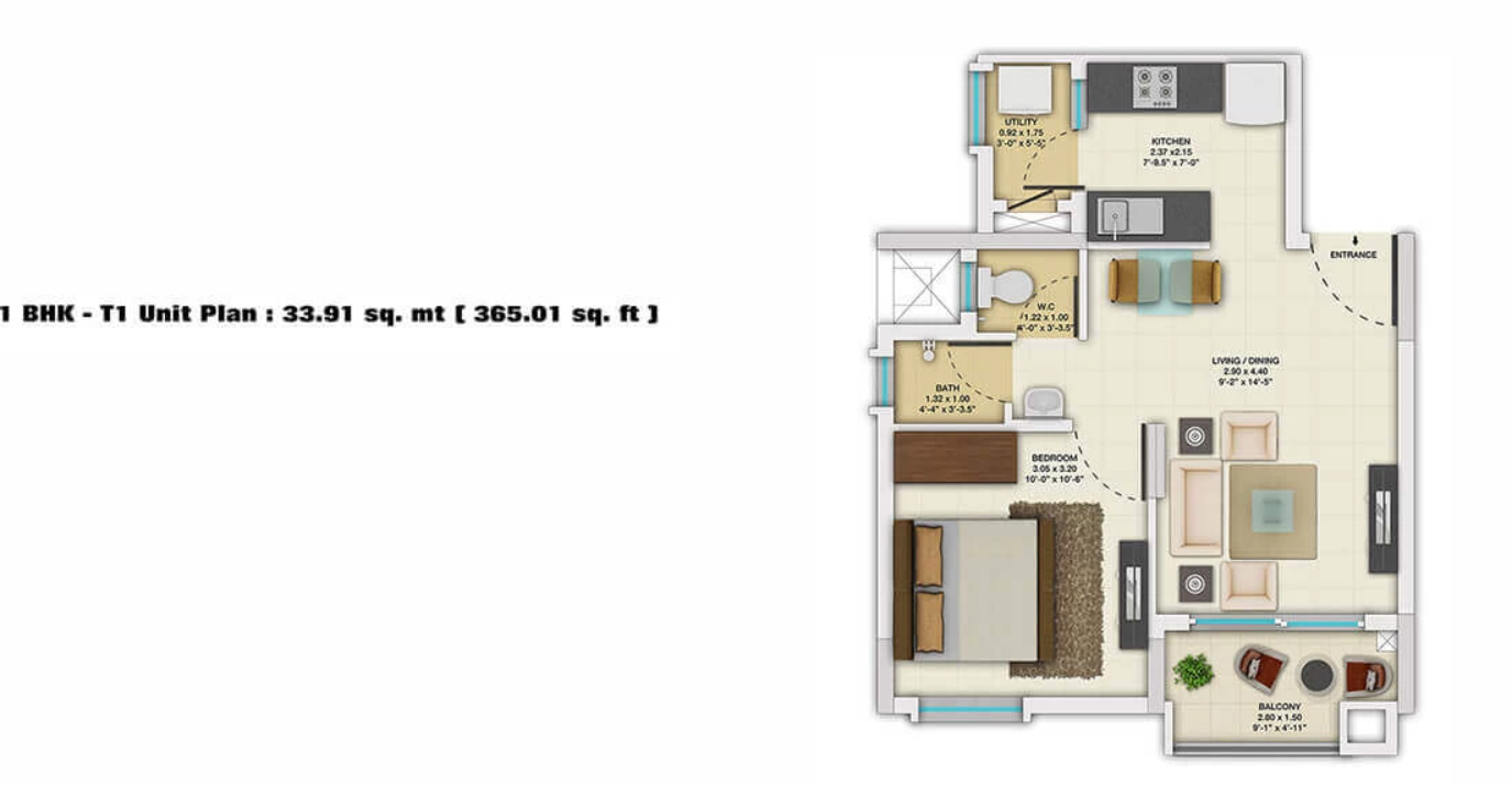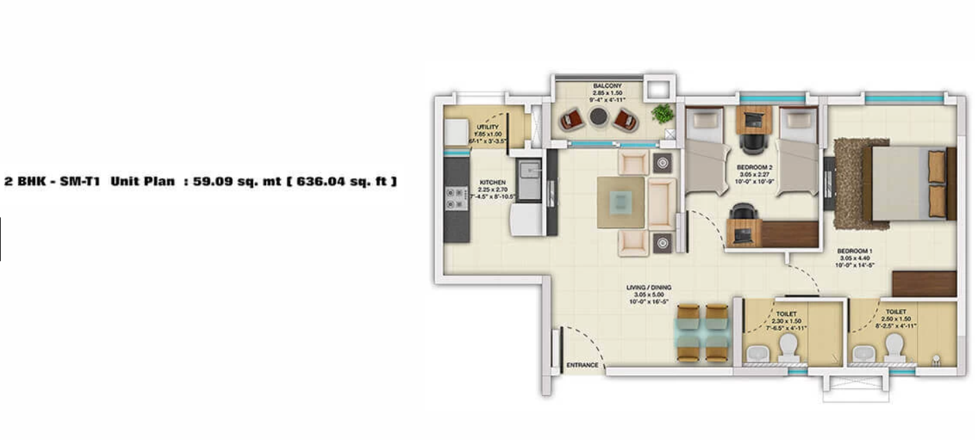 • Sqft 612